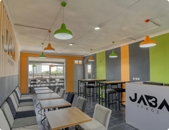 Jaba Space, qui signifie “espace de partage” en langue Douala, est le lieu de rencontre entre les entrepreneurs, les startuppers, les porteurs de projets et d’idées d’entreprises à la recherche d’un environnement de travail équipé et prêt-à-l’emploi, d’un appui au démarrage (incubation) ou d’un coup d’accélérateur au développement de leur activité.
